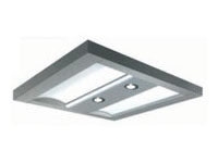 双拱形白色有机遮光板,加中部筒灯的柔光照明设计